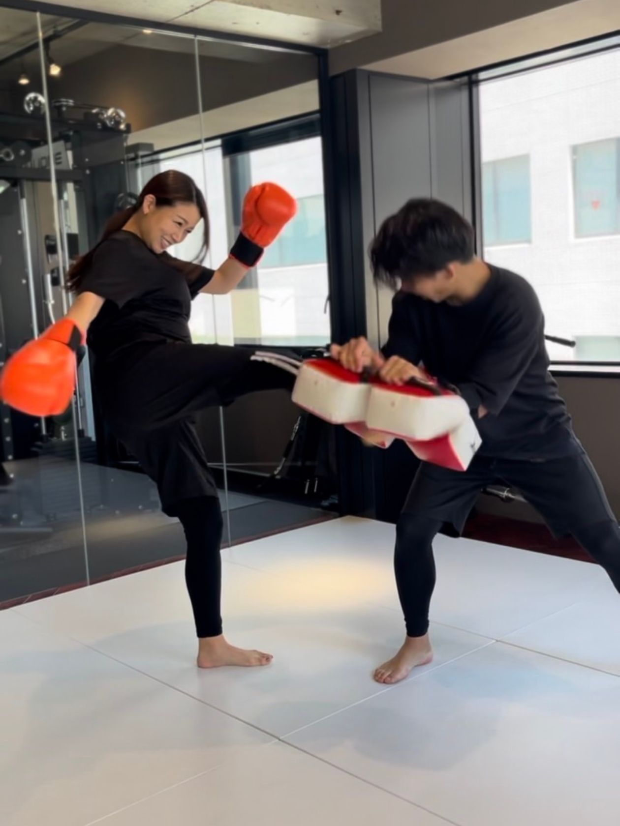 元プロキックボクサーのトレーナーによるキックボクシングトレーニング。キックボクシングは全身を使うため、筋力、心肺機能、持久力を向上させるだけでなく、ストレス解消や脂肪燃焼効果もあります。