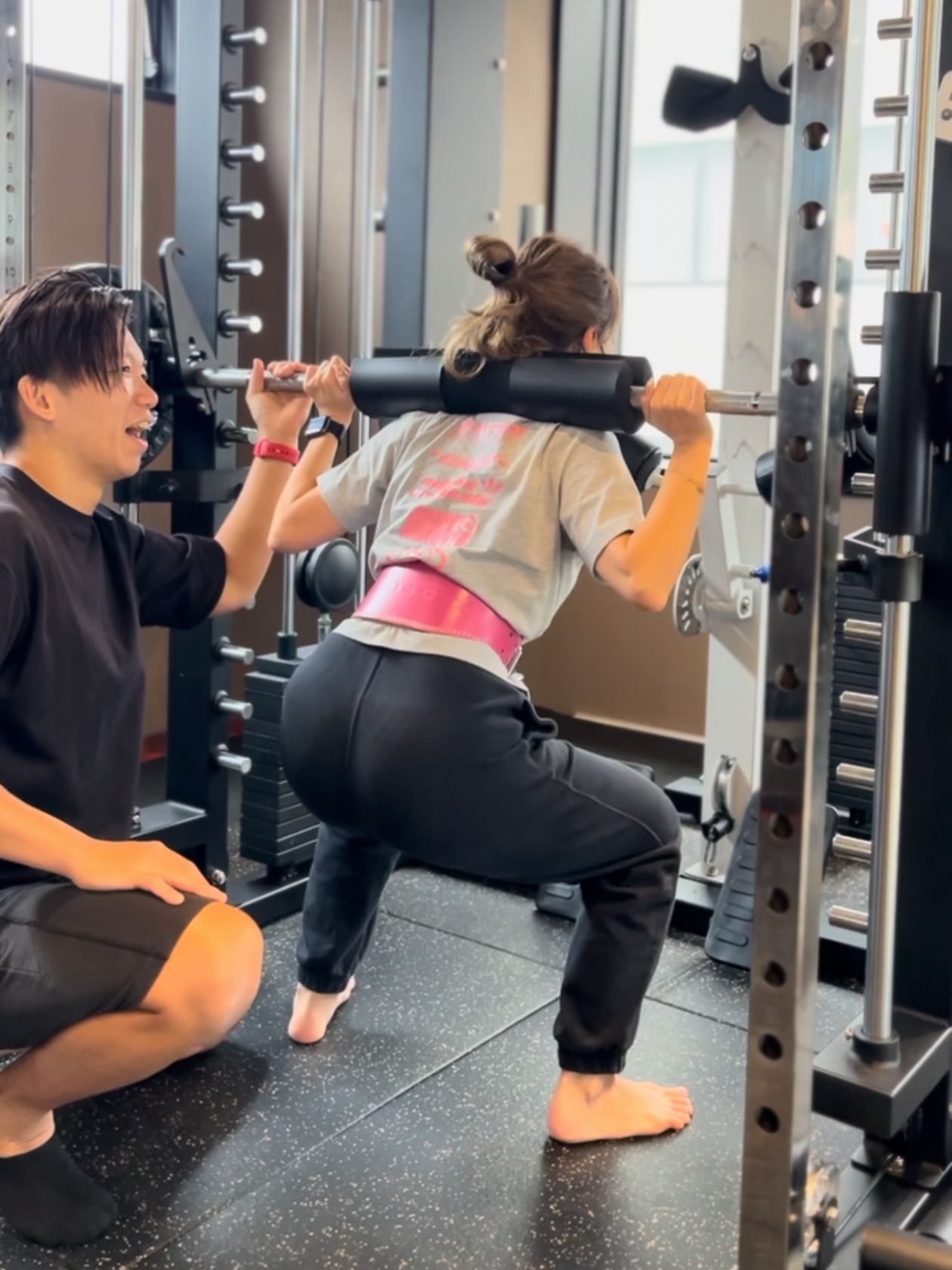 オールインワンスミスマシンを使用したトレーニングで、効率よく全身を鍛えます。スミスマシンはフォームの安定性が高いため、初心者でも安全にトレーニングを行うことができます。 -