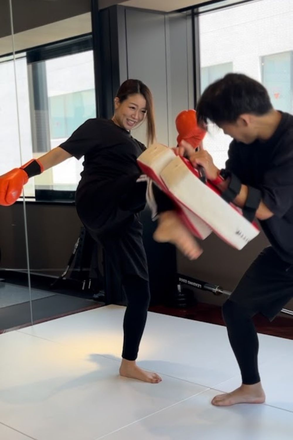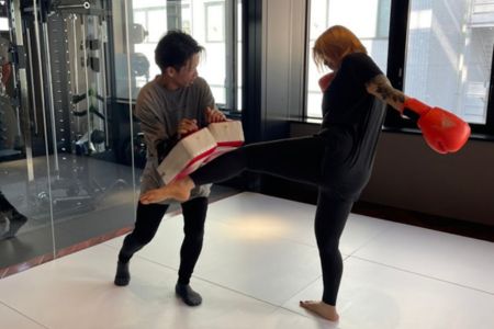元プロキックボクサーのトレーナーによるキックボクシングトレーニング。キックボクシングは全身を使うため、筋力、心肺機能、持久力を向上させるだけでなく、ストレス解消や脂肪燃焼効果もあります。